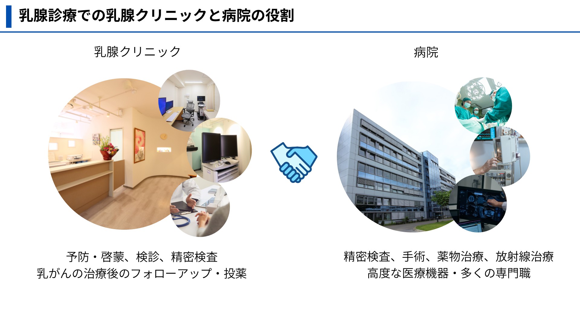 それぞれの医療機関が役割を分担することで、より質の高い医療を提供できる分野です。