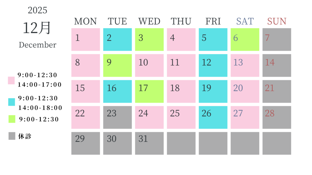 カレンダーからご希望の診察日時をお選びください。予約時間の5~10分前にはご来院をお願いいたします。 -